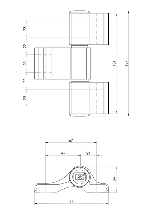Principală Balamale pentru uși Balama WEX 3 componente RAL 9016 alb 67 mm
