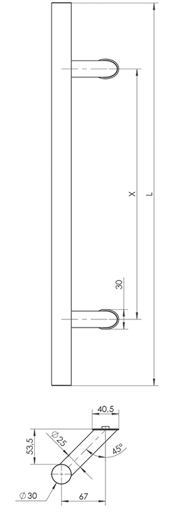 Principală Mânere Maner cu doua fete 1300/1800 Ø30 inox