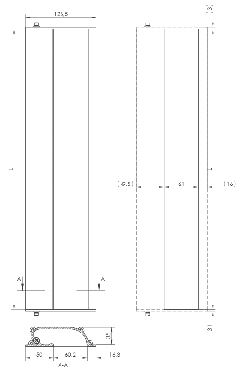 TIP: Mâner KА1 complet din aluminiu, cu posibilitatea de finisare integrală în culorile paletei RAL, ANODE, INOX.