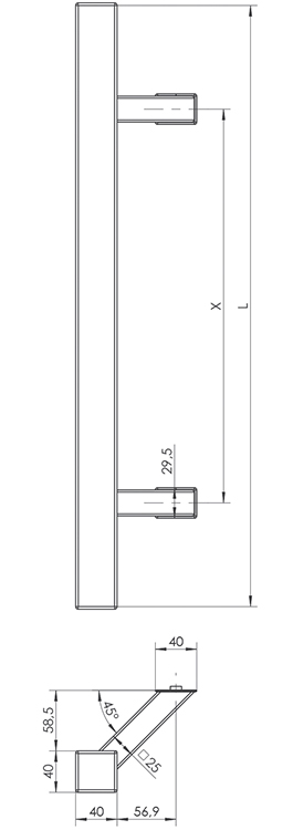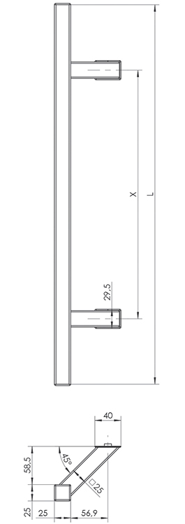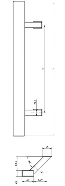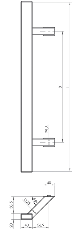 Mânerul este fabricat din oțel inoxidabil 304 sau 316. În mod standard este șlefuit, dar poate fi și sablat (max. 1000 mm) sau polisat. Mânerele din oțel sunt realizate din țevi cu secțiunea de 25x25, 40x20, 40x40 sau 50x25.