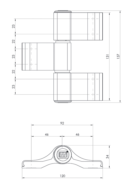 Principală Balamale pentru uși Balama WEX 3 compartimente RAL 7016 antracit 67 mm
